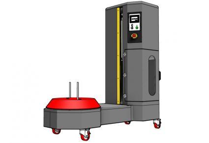 Принцип работы: оператор устанавливает чемодан на поворотный стол, закрепляет край стрейч-пленки и запускает программу обмотки. Упаковка происходит в автоматическом режиме.